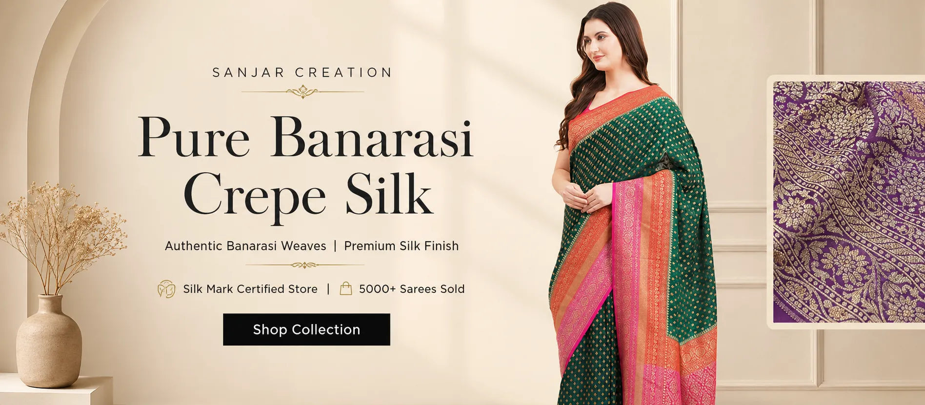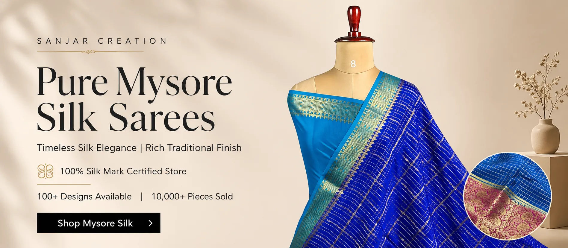 For pure silks and handloom sarees, we recommend dry cleaning only. Store in a cool, dry place, wrapped in a breathable fabric (like cotton), and avoid direct sunlight for long periods.