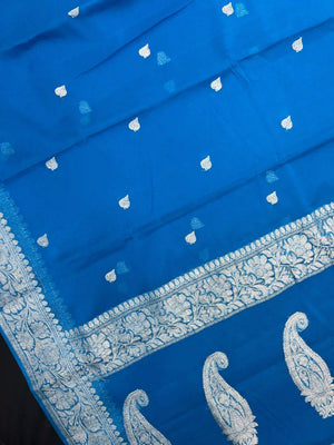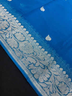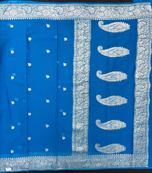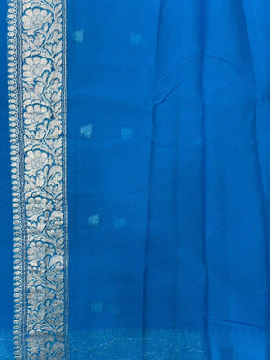 Expertly crafted from pure Khaddi chiffon, this Banarasi saree is a must-have for any traditional wardrobe. With its intricate woven design and luxurious feel, it is the perfect blend of elegance and comfort. Elevate any occasion with this exquisite saree and make a statement wherever you go. With its intricate woven design and luxurious feel, this expertly crafted Banarasi saree is the perfect blend of elegance and comfort. Made from pure Khaddi chiffon, it is a must-have for any traditional wardrobe. Impress others and express your unique style with this exquisite saree at any event or function.