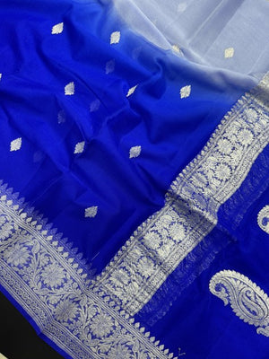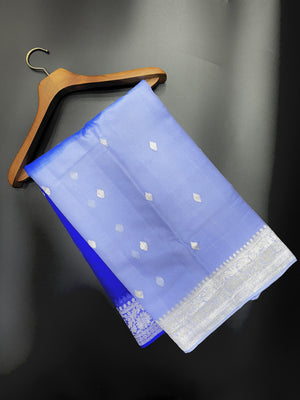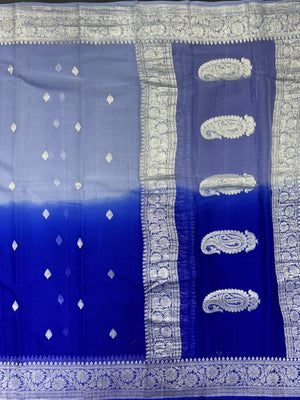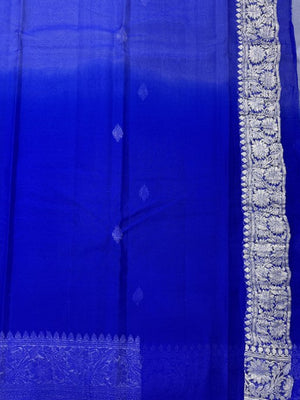 Expertly crafted from pure Khaddi chiffon, this Banarasi saree is a must-have for any traditional wardrobe. With its intricate woven design and luxurious feel, it is the perfect blend of elegance and comfort. Elevate any occasion with this exquisite saree and make a statement wherever you go. With its intricate woven design and luxurious feel, this expertly crafted Banarasi saree is the perfect blend of elegance and comfort. Made from pure Khaddi chiffon, it is a must-have for any traditional wardrobe. Impress others and express your unique style with this exquisite saree at any event or function.