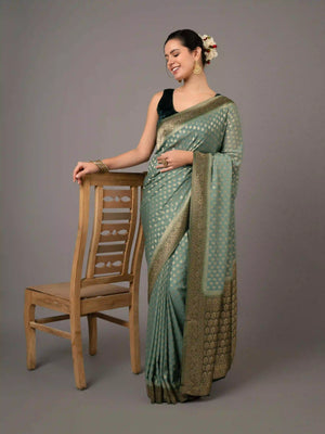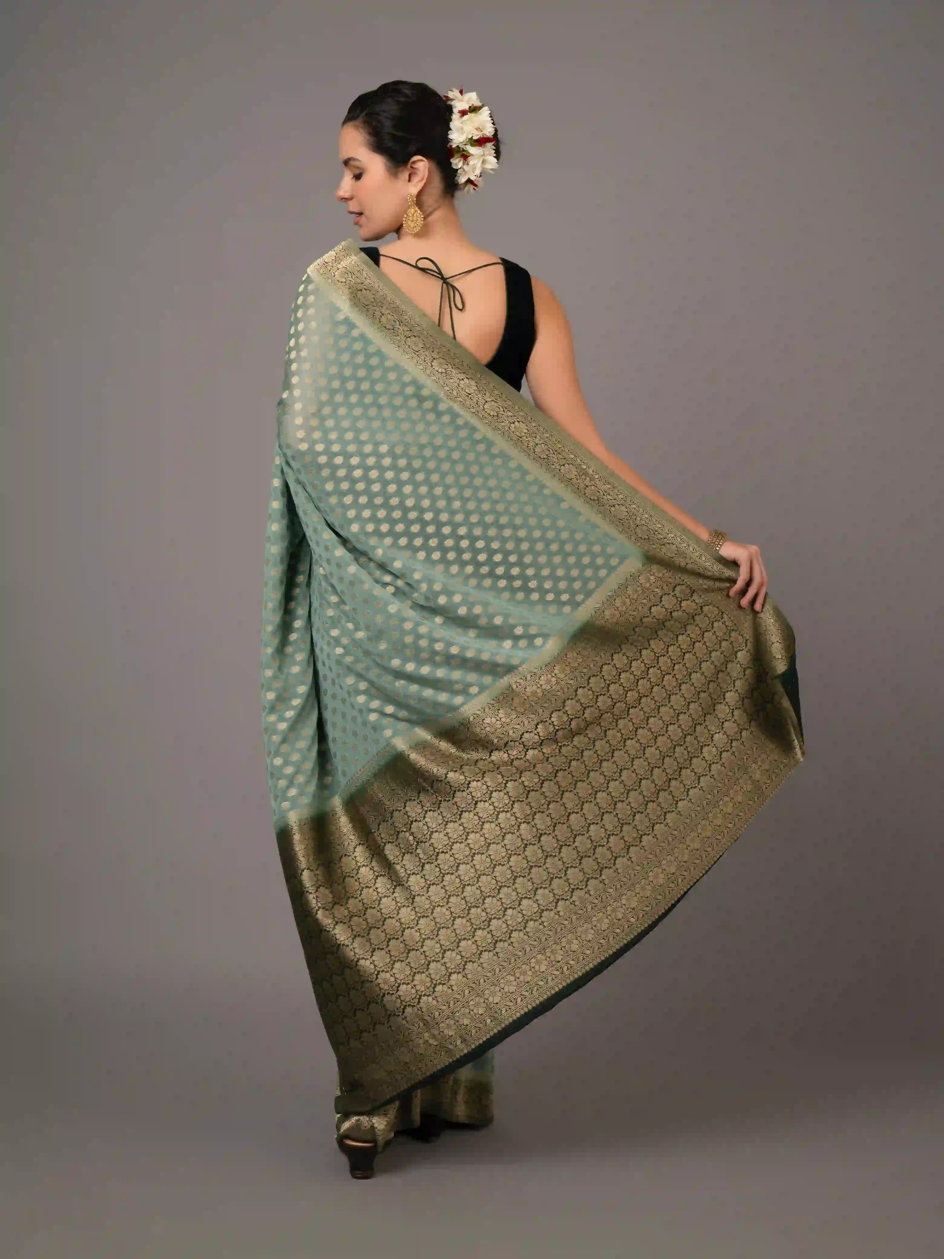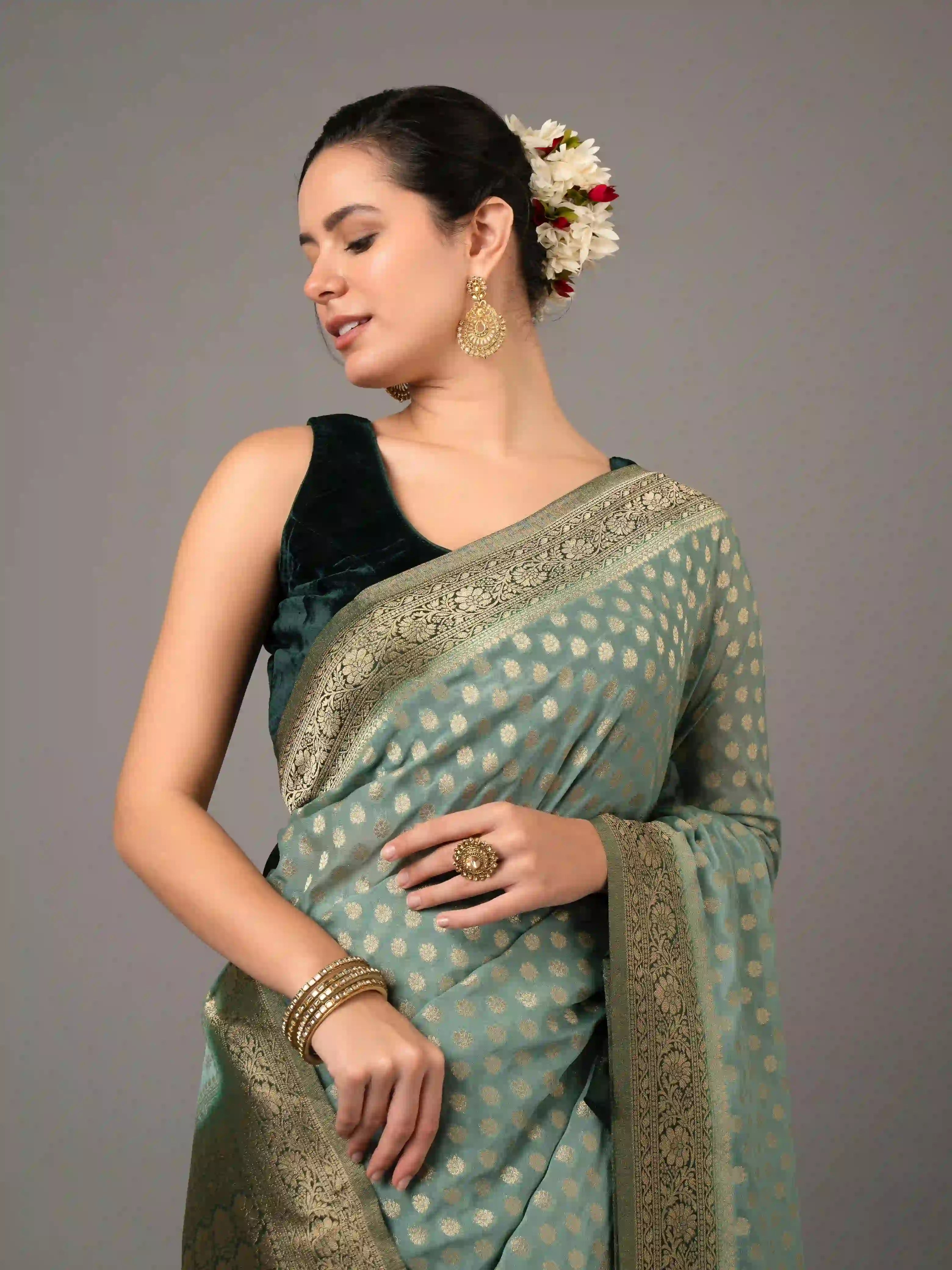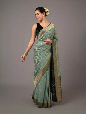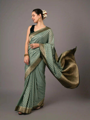 Make a statement with this eye-catching Banarasi georgette saree! Designed with an all-over zari butti in an eye-popping combo of orange and rani pink, you'll look vibrant and gorgeous while you flaunt your style. Go ahead, show 'em who's boss! Elevate your fashion game with the stunning Banarasi Semi Khaddi Butti Georgette Saree. With its eye-catching combination of orange and rani pink and intricate zari butti design, you'll turn heads and make a bold statement. This saree is perfect for anyone looking to add a touch of vibrancy and glamour to their wardrobe.