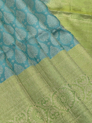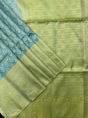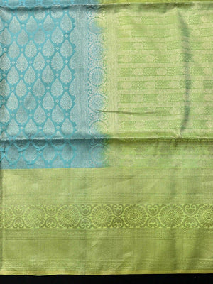 Sky Blue & Parrot Green Pure Silk Kanjivaram Saree