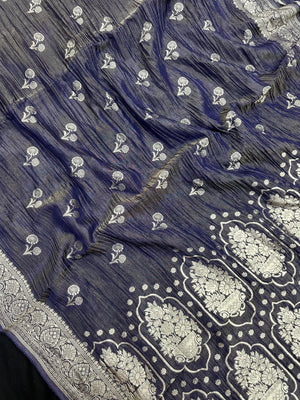 Crush Tissue Silk Saree – Textured Shine for Glamorous Festive Drapes