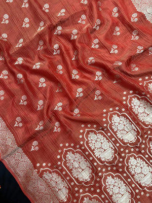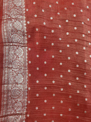 Elevate your style with our Crush Tissue Silk Saree, designed with a unique crushed texture and subtle metallic sheen that makes every drape stand out. Lightweight yet luxurious, this saree is perfect for weddings, parties, festive celebrations, and evening events.