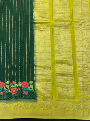 Ideal for festive occasions, weddings, and celebrations, this Semi Mysore Silk Saree exudes sophistication and style. The intricate weaving patterns and vibrant colors are a testament to the artistry and heritage of Mysore silk, while the modern designs offer a fresh twist to suit today’s fashion-forward wearer. Whether you prefer classic elegance or contemporary flair, this saree is versatile enough to be styled for both traditional and modern settings.