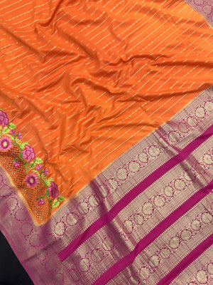 "Embrace the elegance and grace of traditional craftsmanship with our Semi Silk Saree, a timeless piece that combines the richness of Mysore silk with contemporary design. Made from premium quality silk, this saree offers a luxurious, smooth texture and a beautiful sheen that catches the light, enhancing its overall charm. The soft and breathable fabric drapes effortlessly, creating a flattering silhouette that’s perfect for all body types.