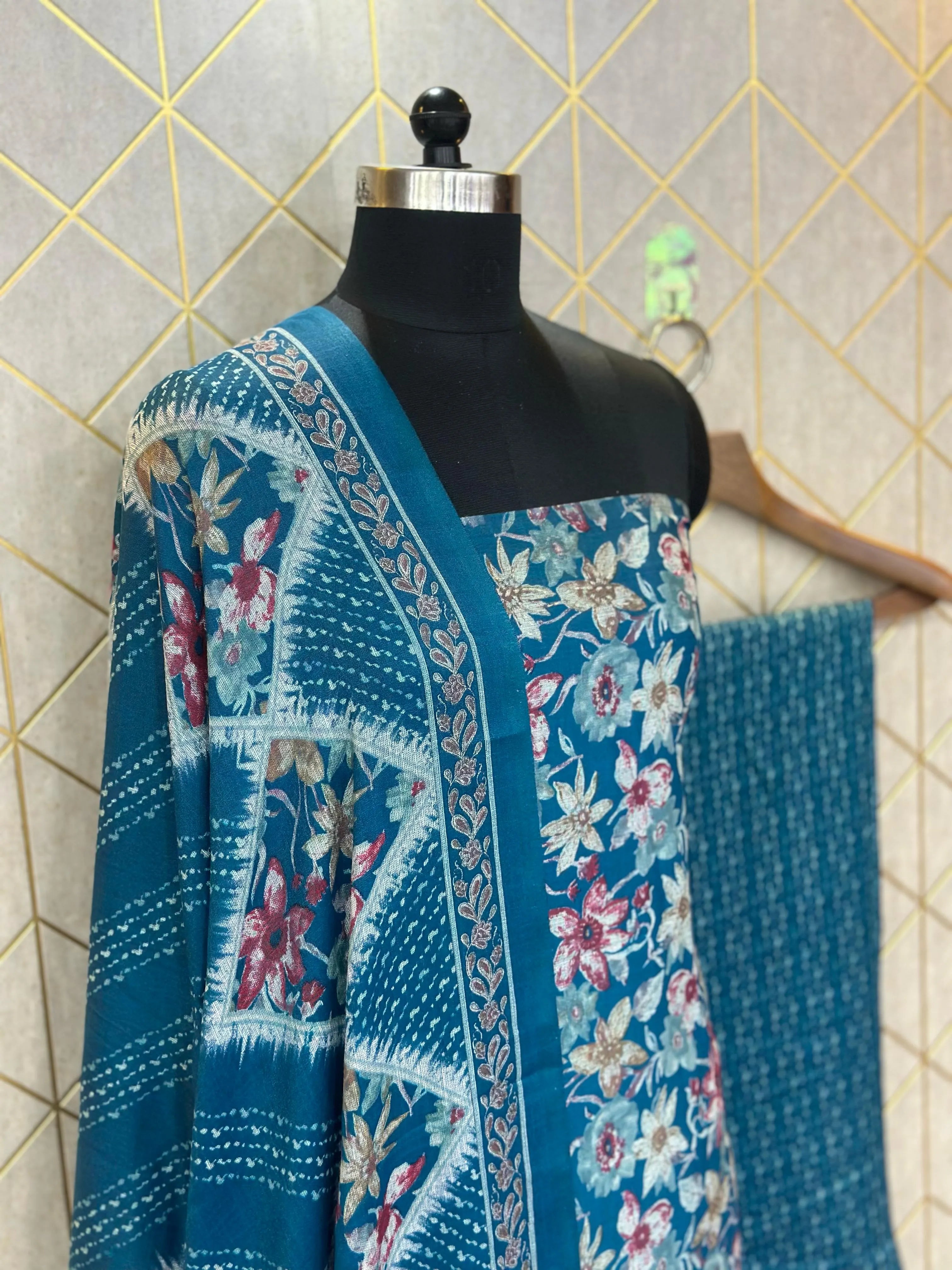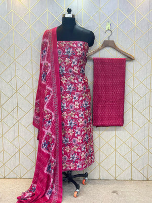 Grace in Threads: Makhmali Cotton Unstitched Salwar Suit (3-Piece Set)