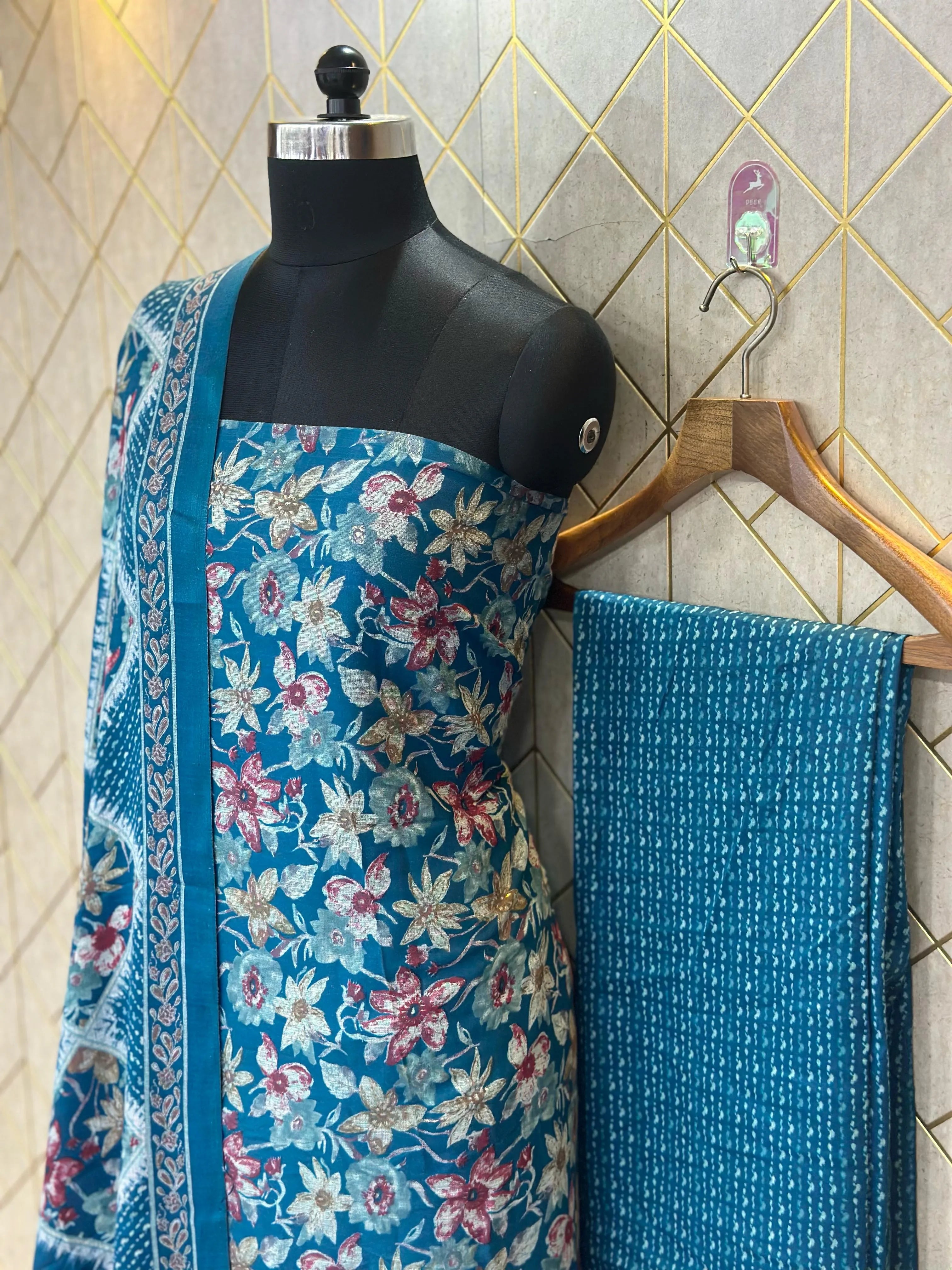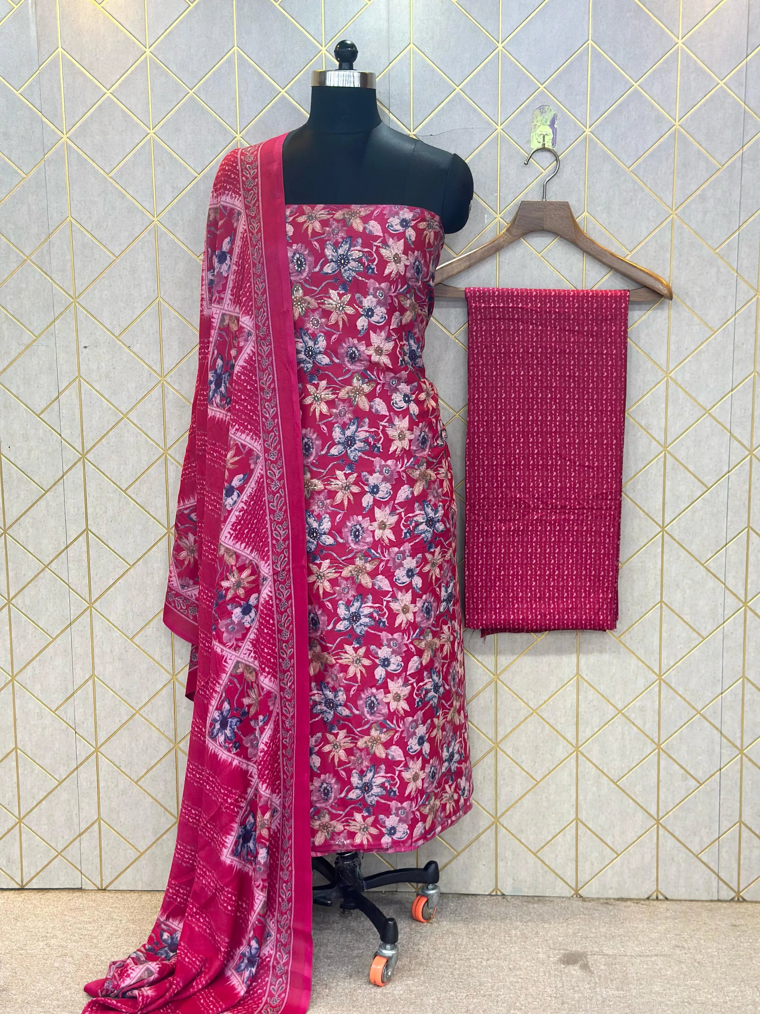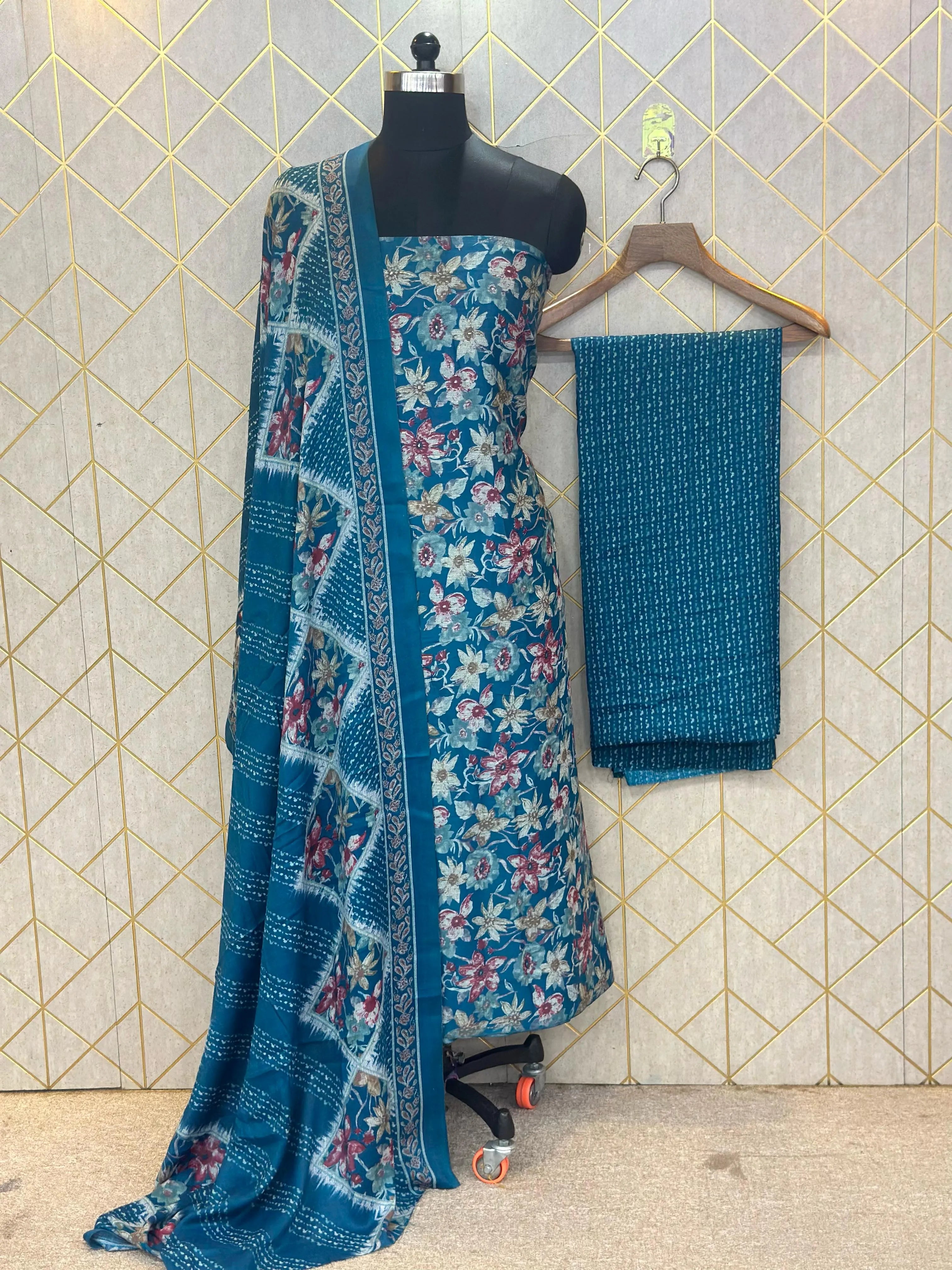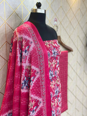 Grace in Threads: Makhmali Cotton Unstitched Salwar Suit (3-Piece Set) is a perfect blend of elegance, comfort, and tradition. Crafted from premium Makhmali Cotton, this unstitched dress material offers a soft, velvety texture that feels luxurious on the skin. The set includes a beautifully designed top fabric, a matching bottom, and a lightweight, flowy dupatta that completes the look with grace. Ideal for festive occasions, casual outings, or everyday ethnic wear, this 3-piece suit provides the freedom to customize your fit and style. Embrace the charm of handpicked cotton comfort and let your wardrobe reflect timeless beauty with this versatile and elegant ensemble