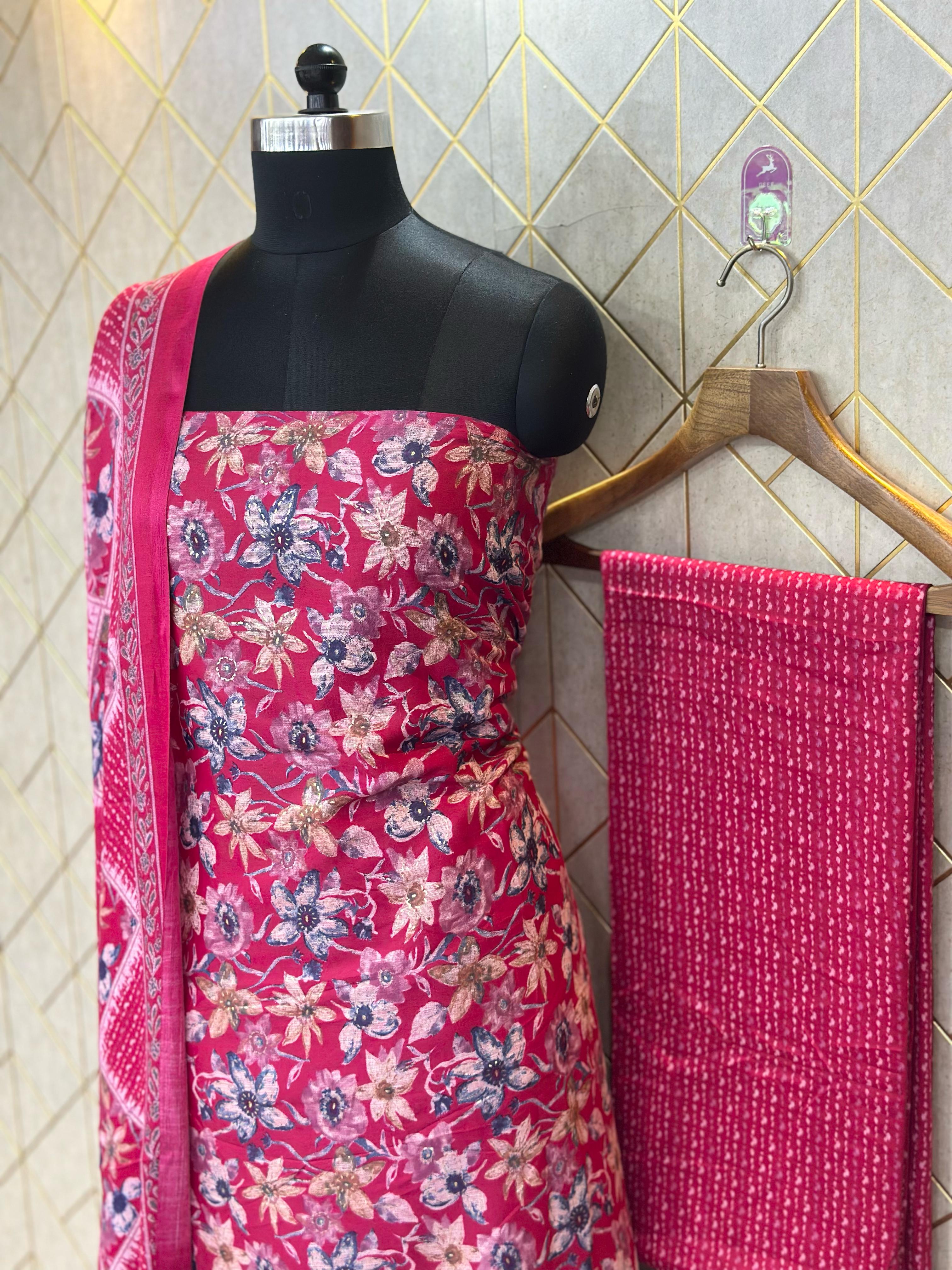Home Grace in Threads: Makhmali Cotton Unstitched Salwar Suit (3-Piece Set)