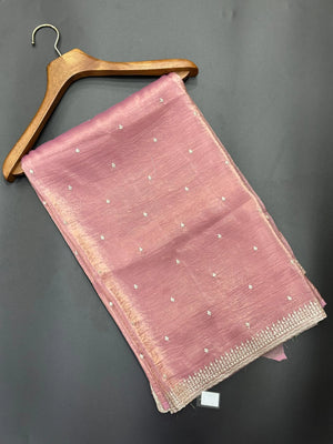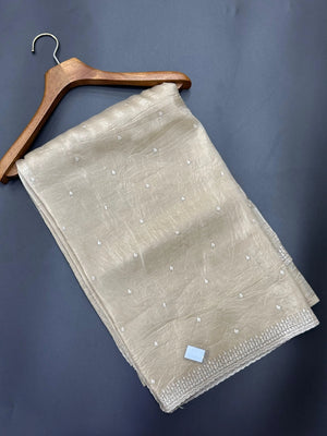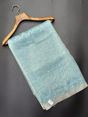 Party Wear Smooth Paper Silk Saree- Crush Embroidery