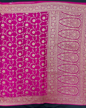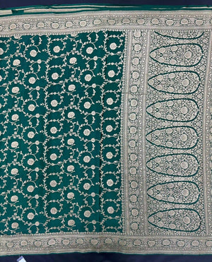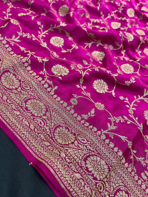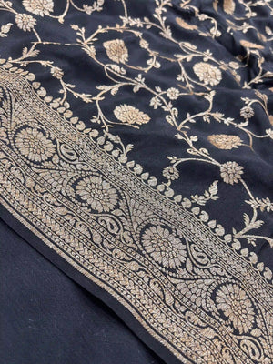 Discover the elegance of our Pure Banarasi Crepe Saree. Made from high-quality material, this saree offers a delicate drape with a touch of luxury. Perfect for any occasion, it provides a smooth and comfortable feel while showcasing its beautiful Banarasi design. Elevate your wardrobe with this timeless piece. Featuring a blend of quality and luxury, this Pure Banarasi Crepe Saree offers a delicate drape that exudes elegance. Its premium material and intricate Banarasi design make it the perfect choice for any occasion, delivering both style and comfort. Add a touch of sophistication to your collection with this timeless piece.