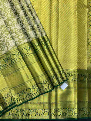 Indulge in the rich history and beauty of silk with the Pure Kanjivaram brocket Silk Saree. Crafted using traditional weaving methods, this saree is as durable as it is elegant. Make a timeless statement with this luxurious addition to your wardrobe.
