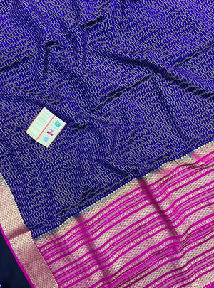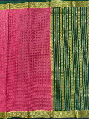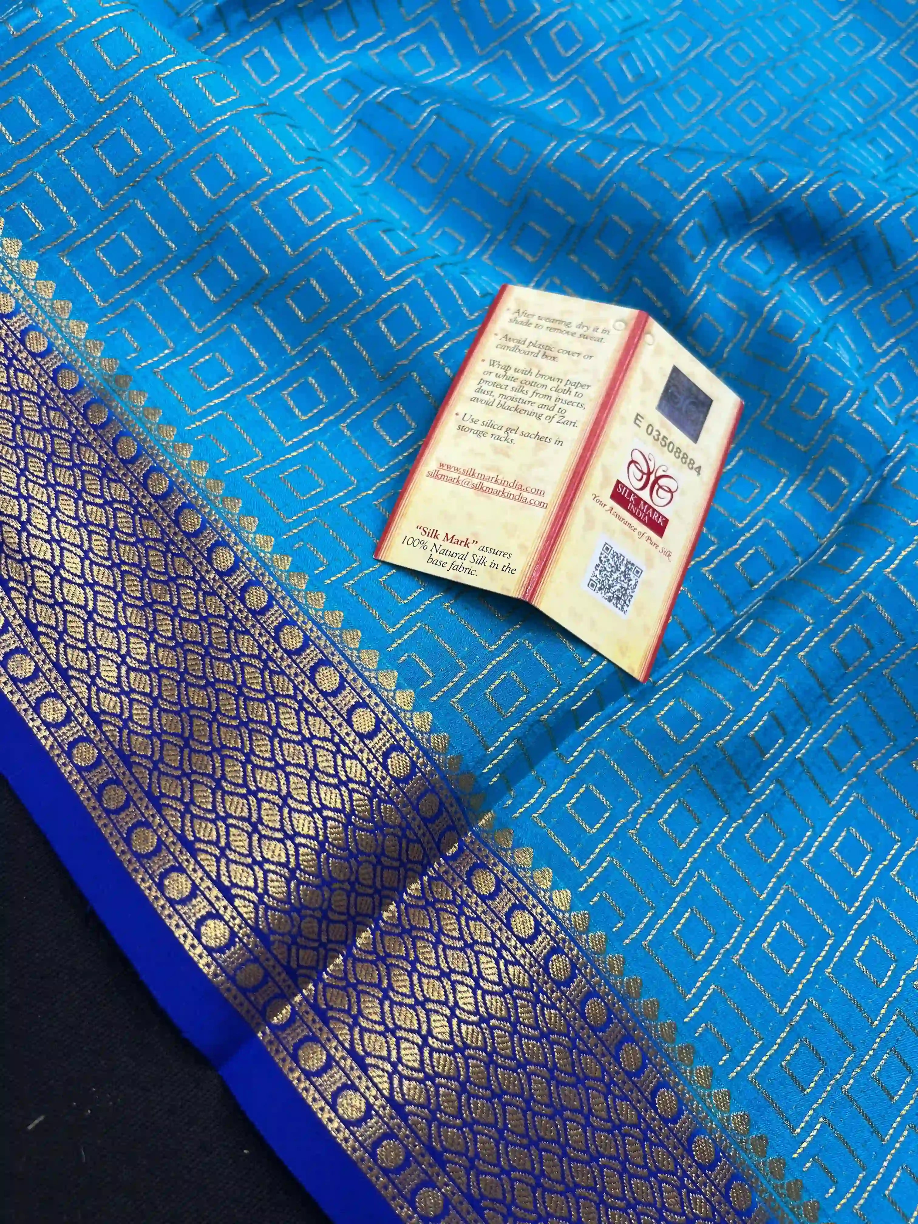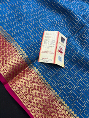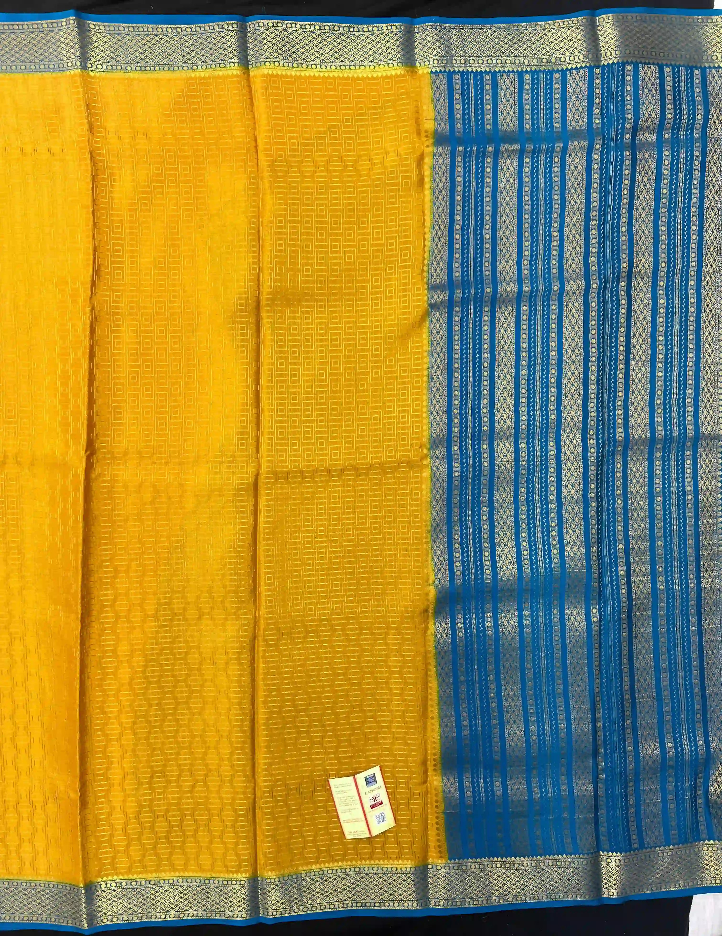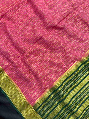 Crafted from high-quality Mysore crepe silk, this saree features traditional Bhanu checks, adding elegance and sophistication to any occasion. Perfect for draping in style, this saree is a must-have for any fashion-forward individual looking for a touch of tradition. Made with precision and care from the finest Mysore crepe silk, this saree showcases stunning Bhanu checks that enhance the overall look and feel. With its classic appeal, this saree is the perfect addition to your wardrobe for a timeless, yet stylish choice. Experience the luxury and grace of traditional fashion with this must-have saree.