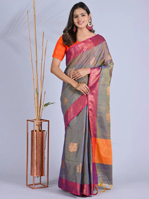 Get ready to elevate your style game with our Semi Silk Sarees- Kanchi Lenin Saree. Made from top-notch semi silk, these sarees boast a striking Kanchi Lenin design that is sure to make a statement. Indulge in the luxurious feel and sophisticated look of our sarees, ideal for any event or celebration.