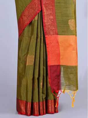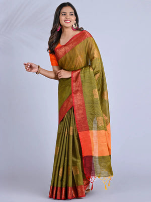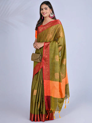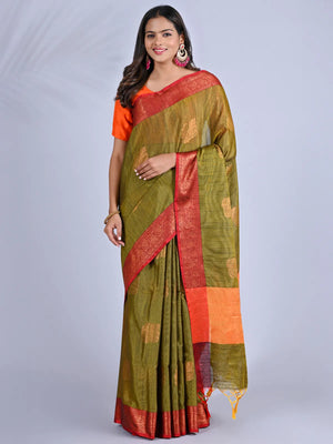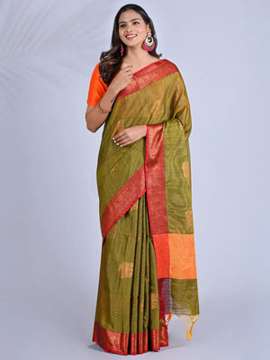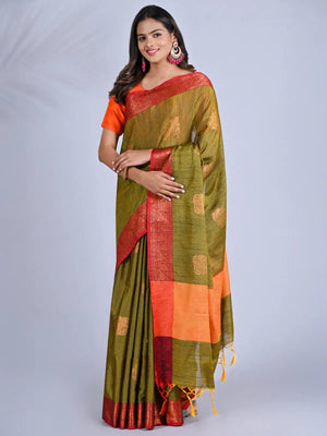 Get ready to elevate your style game with our Semi Silk Sarees- Kanchi Lenin Saree. Made from top-notch semi silk, these sarees boast a striking Kanchi Lenin design that is sure to make a statement. Indulge in the luxurious feel and sophisticated look of our sarees, ideal for any event or celebration.