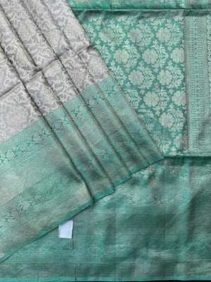 Silver & Rama Green Pure Silk Kanjivaram Saree
