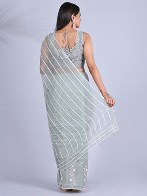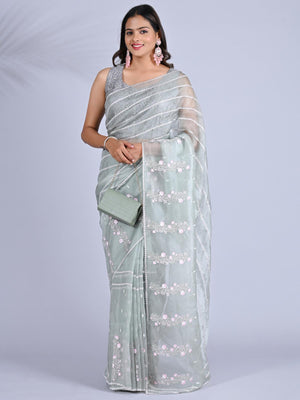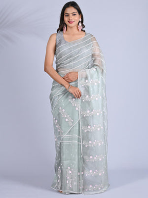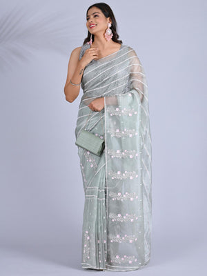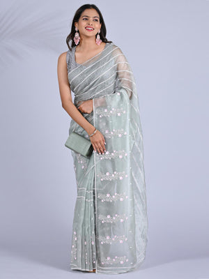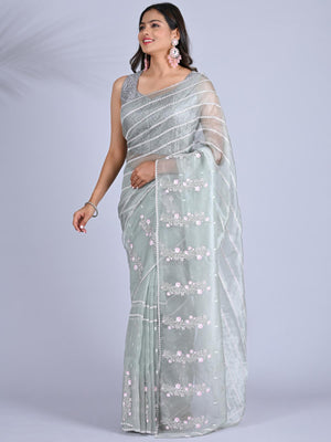 Make a bold and elegant statement with this Stunning Black Organza Saree, beautifully adorned with intricate Kashmiri embroidery. The rich black color pairs flawlessly with the detailed handwork, adding an element of sophistication and charm. This saree is perfect as fancy wear for any party, whether it’s a cocktail, wedding, or a special gathering. The lightweight organza fabric ensures comfort, while the embroidery work brings a touch of traditional artistry, making it a unique choice for those seeking something truly special. Elevate your party look and make a lasting impression in this exquisite saree.