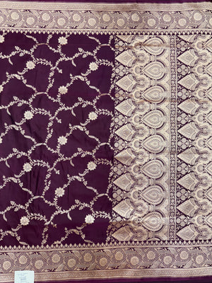 "Make a stunning statement on your special day with the Venice Katan Satin Silk Zari Work Saree. This luxurious saree is crafted from high-quality Katan satin silk, offering a soft and smooth texture that drapes beautifully. The intricate zari work, meticulously woven into the fabric, adds a touch of timeless elegance and grandeur, making it perfect for weddings, festive celebrations, and other joyous occasions.