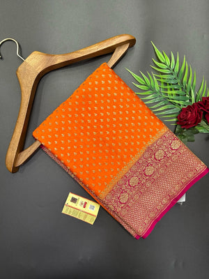 Vibrant Orange Pure Banarasi Crepe Silk Saree – Perfect for Wedding & Festive Wear