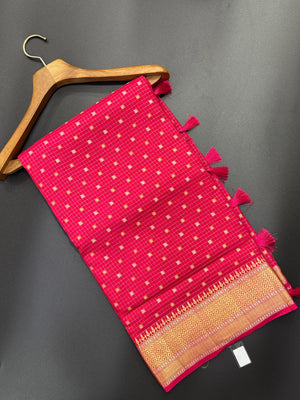 Meet your new favorite fabric. Enjoy the premium comfort and elegant style of Viscose Banarasi Semi Khaddi Georgette. With a unique blend of Viscose, Banarasi, and Semi Khaddi Georgette, this fabric offers high-quality and luxurious texture - the perfect choice for any occasion.